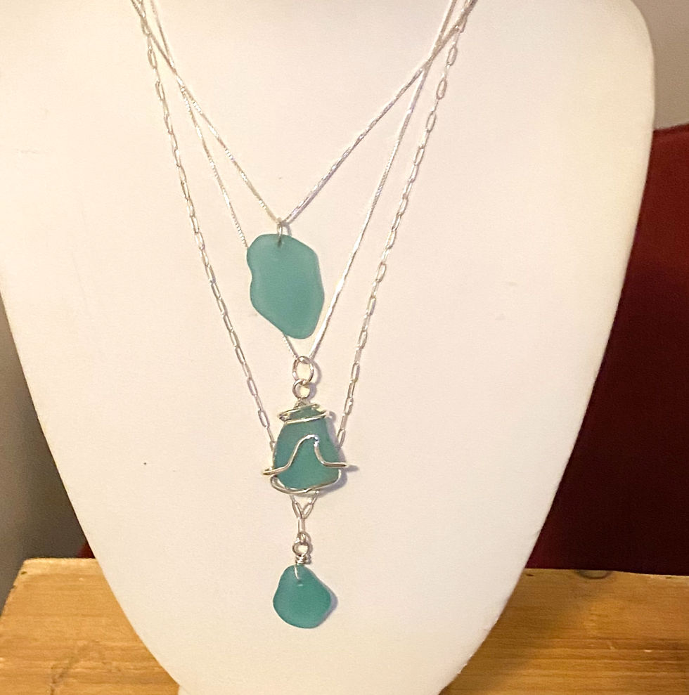 Each piece in this collection is lovingly handcrafted from start to finish using metal smithing techniques I’ve learned over the years. No two are ever the same — just like sea glass, every piece holds its own shape, story, and charm. The tiny marks and natural imperfections are part of what makes each creation beautifully unique, and a reflection of the hands that made it.