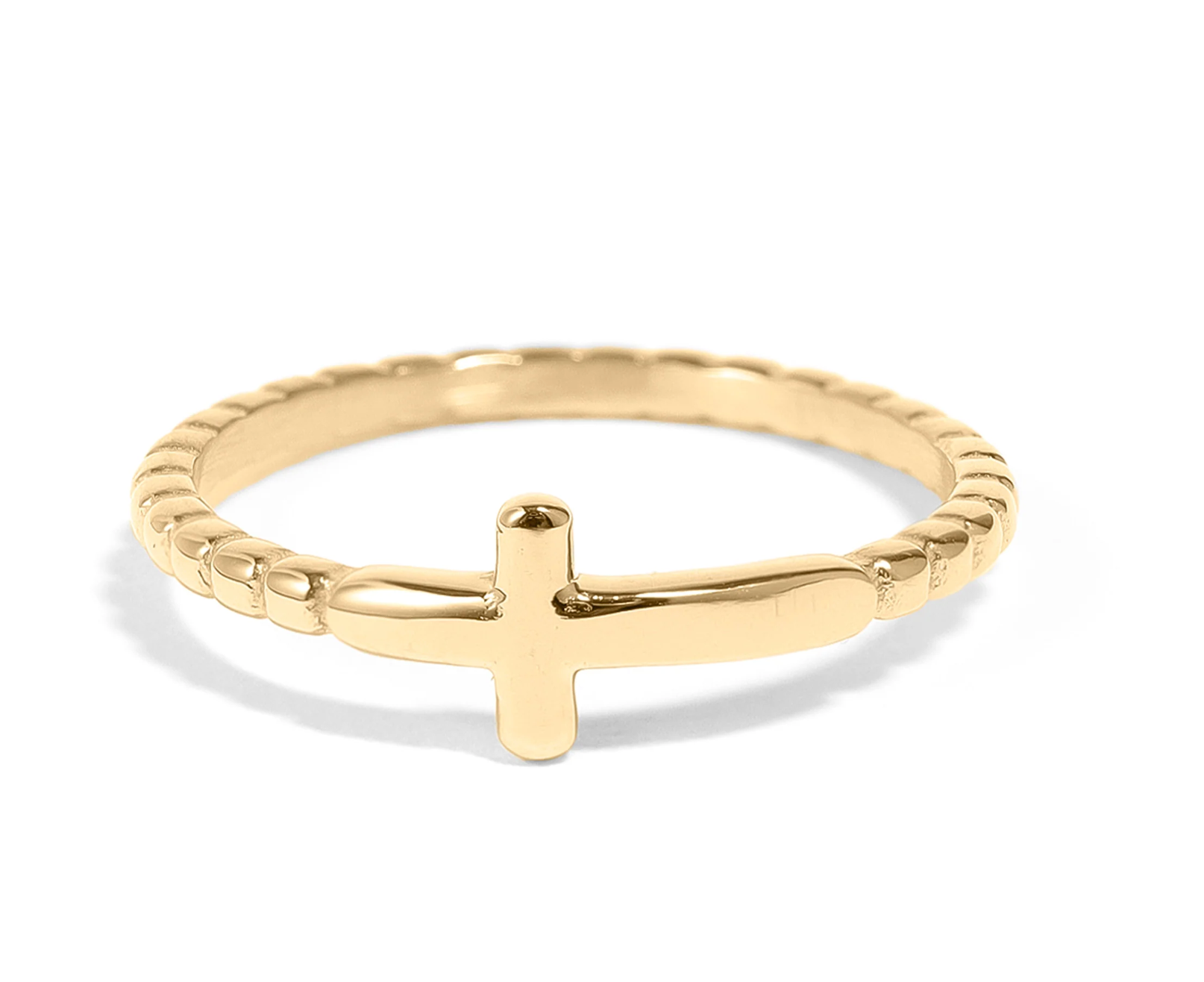 18K Gold PVD Stainless Steel Beaded Cross Stacking Ring