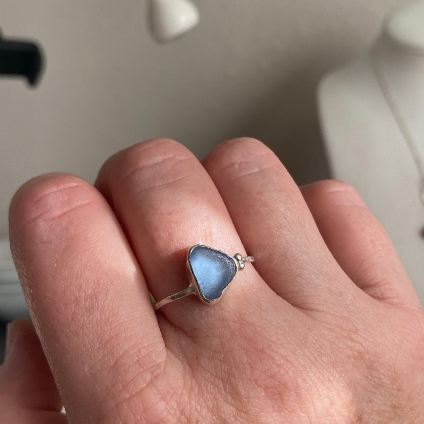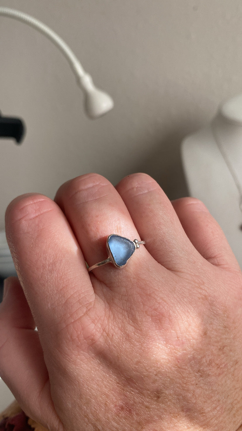 Cornflower Blue Sea Glass Ring
