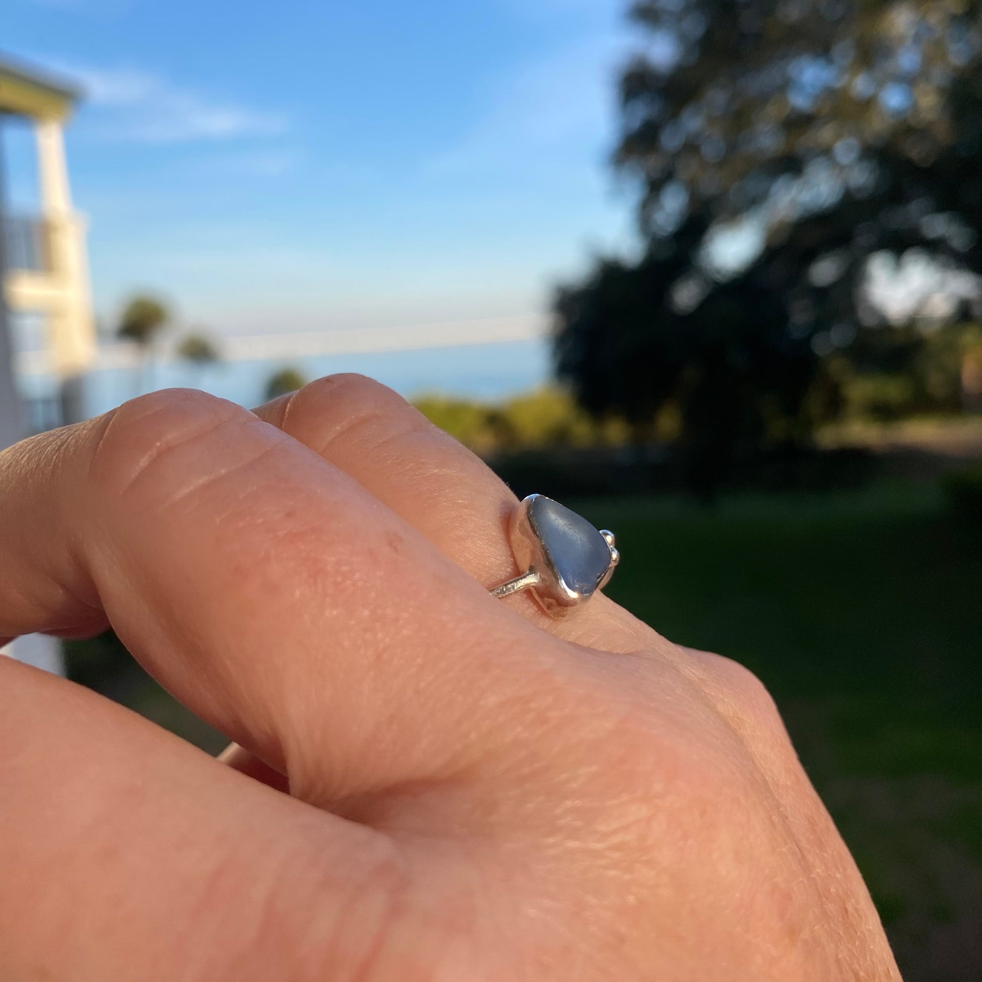 Softly weathered by the sea, this cornflower blue sea glass has been transformed from something once ordinary into something quietly beautiful. Bezel set in solid .925 sterling silver, this ring feels effortless, meaningful, and timeless. Each piece is one of a kind, shaped by time, tide, and intention.