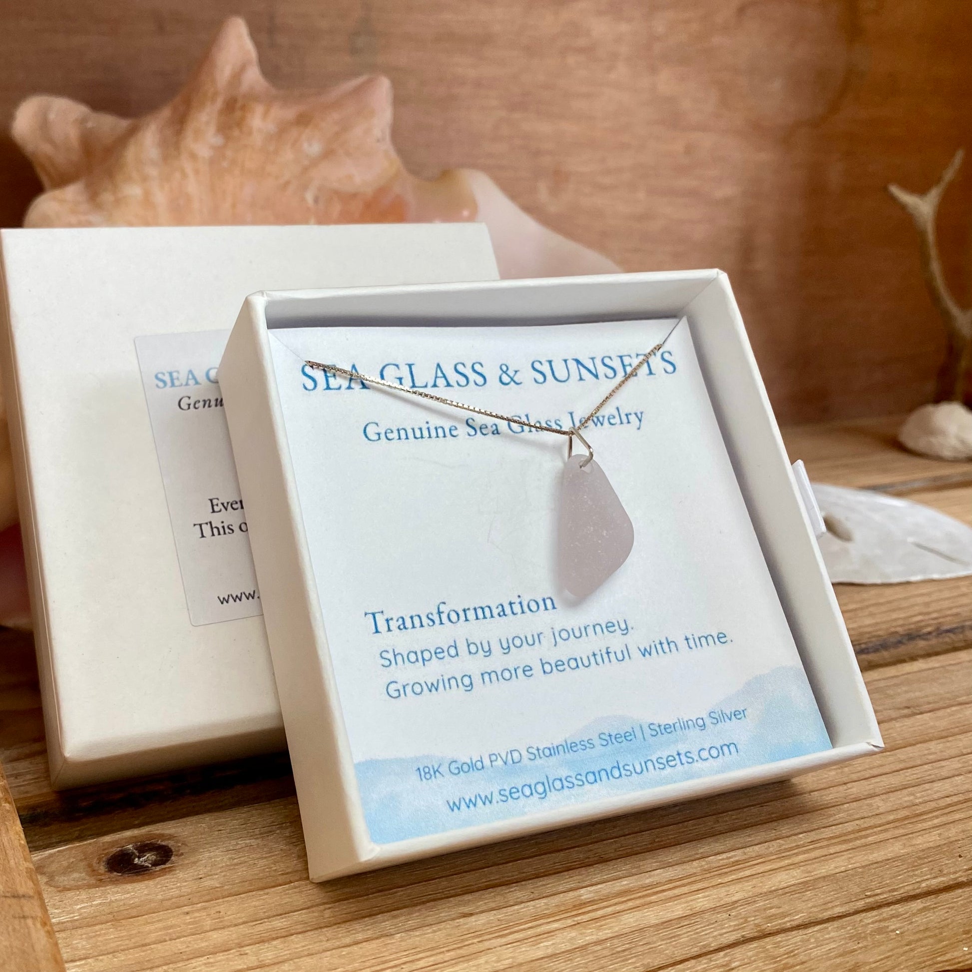 Each piece is completely unique, with organic curves and a frosted glow that can never be replicated. This necklace is a quiet reminder that transformation takes time, and that beauty often comes from the longest journeys.