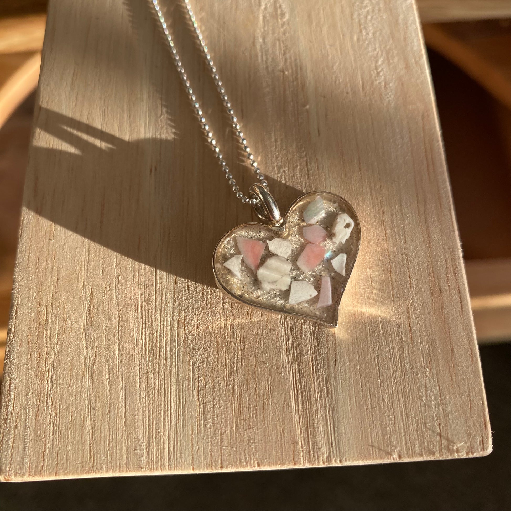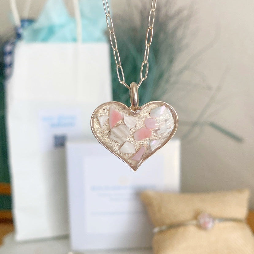 Only One – Sterling Silver Sand & Crushed Shell Beach Heart Necklace