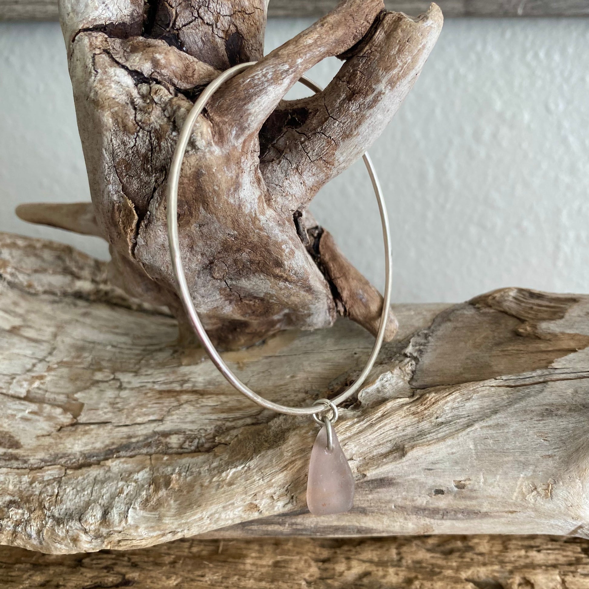 Sterling Silver Sea Glass Bangle Bracelet – Light Purple/Pink