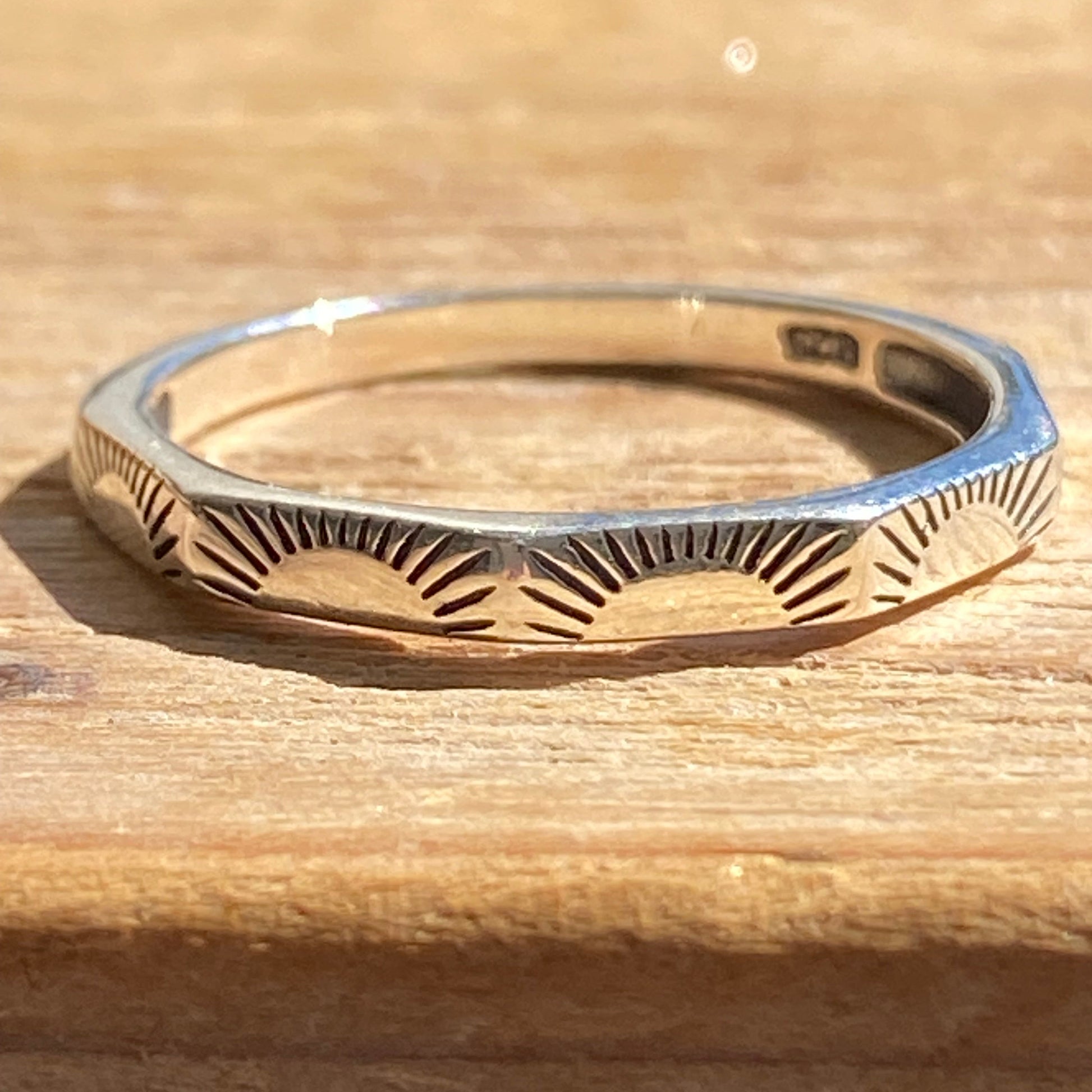 A delicate sunset ring designed to reflect peace, gratitude, and the magic of endings that lead to new beginnings.
